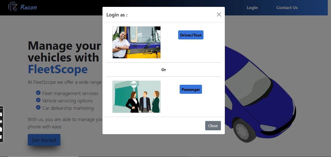 FleetScope is a Django web application that looks to manage fleet of vehicles controlled by a centralised management. The application allows drivers to update on their activities on a daily basis and also update on the condition of the vehicles periodically by indicating whether they are in service or out of service. The information is received at the central management offices as an easier evaluation and monitoring excercise. The application is still in its development stage !!!!